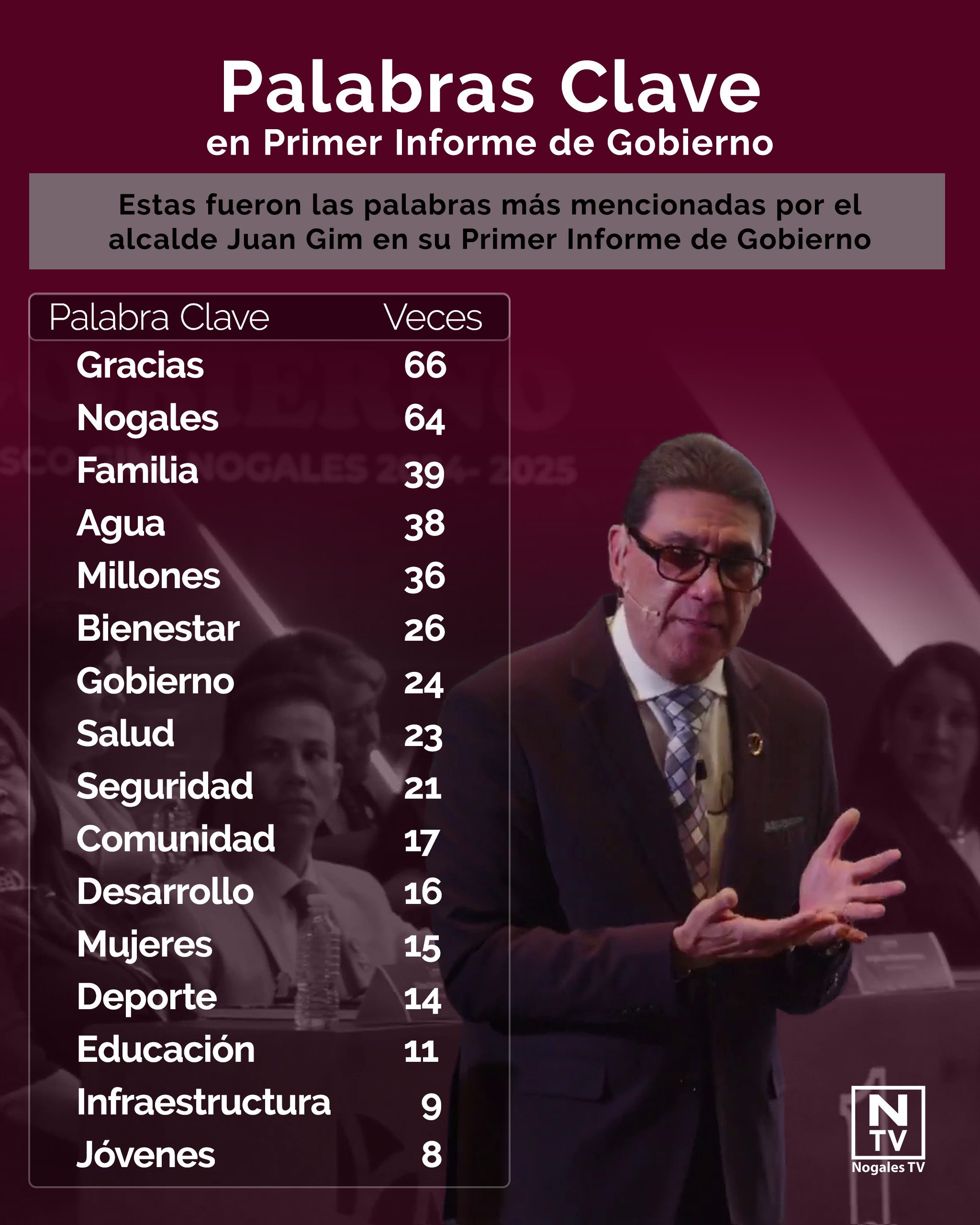 Estas fueron las palabras más mencionadas por el alcalde Juan Gim en su mensaje del Primer Informe de Gobierno.